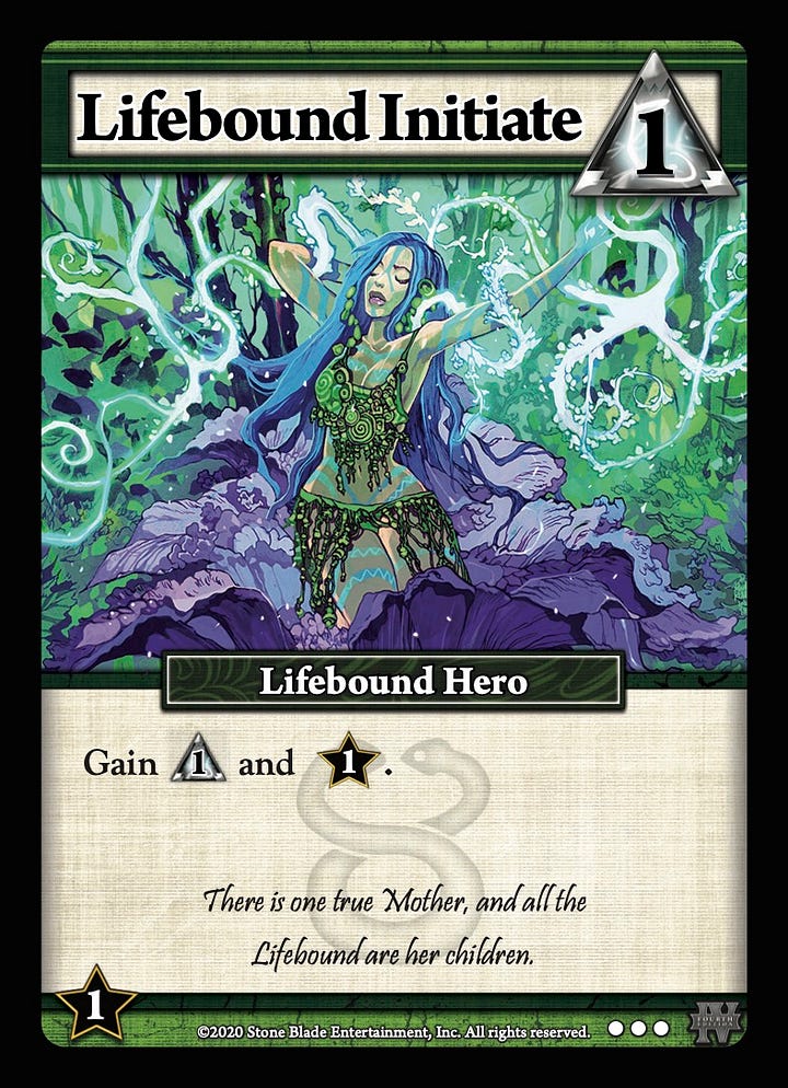 Make a row for each type of effect in your game and a column for each of your factions / component types. For each effect, identify whether a faction is Great, good, ok, or bad at that effect. In SolForge Fusion, the Tempys faction is good at aggressive creatures, direct damage, and spell bonuses. It is bad at defensive effects and protecting its creatures. You can do the same thing with the thematics of the factions. Use cycles of design to make your work easier. A cycle is where you make a similar type of card in each faction, holding most things constant but changing only one or two things. These changes highlight the contrast between factions and help players understand the differences. Ascension did this with our intitiate cycle in our very first set, showing off both the mechanical differences and the style differences for each.